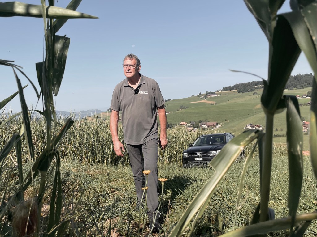 Als Experte für die schweizerische Hagelversicherungsgesellschaft ist Andreas Schluep, Landwirt, rund einmal pro Woche im Einsatz. Auch an diesem Freitag. Beim Rössli in Arni BE hat er sich mit Peter Hofer verabredet, dessen Maisfeld dem Hagel zu Opfer fiel. Zusammen fahren sie zum Schadensplatz.