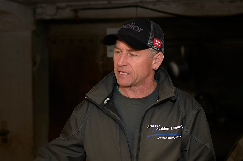 Sanft treibt Benjamin Affolter an diesem Montagmorgen das Tier aus dem Wagen. Das anfängliche Zögern ist verflogen. Klobige Schritte, die Rampe runter, ein Blick nach links, einer nach rechts. Das Salz im Gang soll ihn davor bewahren, auszurutschen. Jetzt rennt er. Direkt in die Halterung. Zwei Metallstangen schnappen zu.